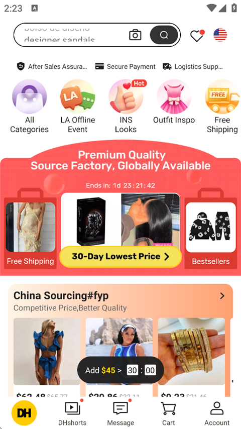 DHgate买家版App采用小额批发模式,支持10件起批的小单快返模式,通过整合供应链为买家提供低价商品,用户直接从卖家那里购物,可以享受到低于零售的价格。软件将根据用户往日购买习惯每天实时推送优惠折扣商品,让用户第一时间了解相关商品优惠信息。软件大多数产品通过1000+航线进行发货配送,可运送到全球超过220个国家和地区,支持未送达退款以及商品错件退款服务,全面保障买家的合理权益。海外购物批发,就找DHgate敦煌网,安心省心!
