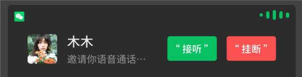 5、当收到微信语音通话时说出“接听”或短按微信按键接通通话
