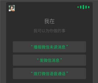 2、在微信首页说“发微信消息”,根据引导说出联系人名称或直接说“发微信消息给xxx”