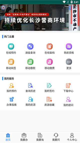 2、在首页页面中,用户可以在线预约、线上档案查询、购房资格等多种业务办理;