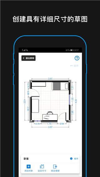 4、每一个房间做好以后都可以储存起来,所有房间拍好后可以组合在一起,软件会自动计算出墙壁的宽度,这太方便了。