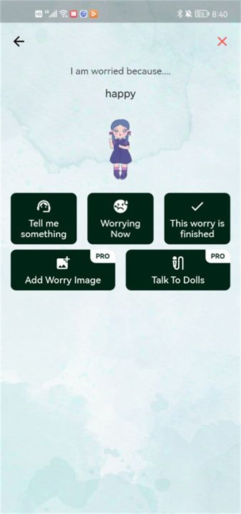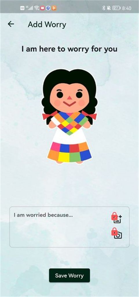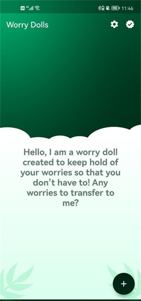 1、首先进入Worrydolls解忧娃娃app当中,之后就可以点击右下角的+号,接下来大家只要有什么烦恼就可以对解忧娃娃诉说了,它就像是你的“树洞”。打开主页面添加烦恼之后,不同的烦恼界面会出现不同的人物,感觉这个人物是为你存在,
