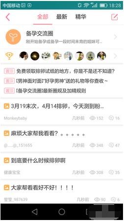 选择你要发布文章的圈子,这里面我以备孕交流圈为例,点击圈子名称进入,然后点击右上角的铅笔形状的图标就可以