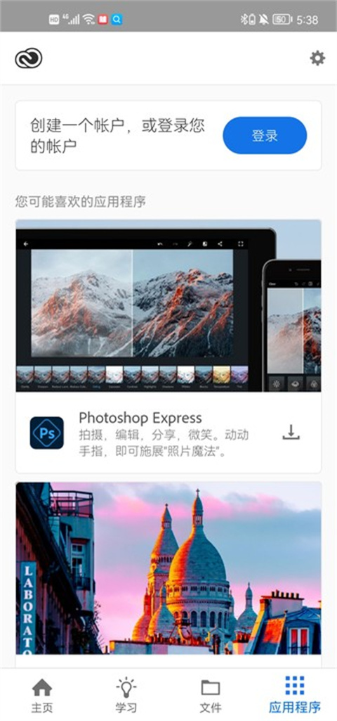 建议(仅限 iOS):此部分根据您使用 Creative Cloud 的方式,个性化地推荐自动化编辑、应用程序和学习内容。