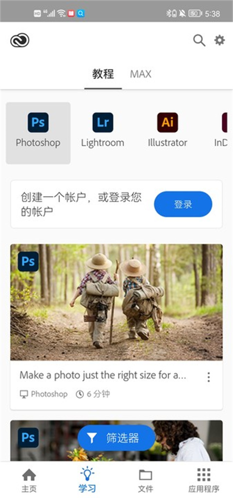 学习是激发灵感的中心,在这里,您可以掌握新的技巧和窍门,并通过数百个专为激发灵感而设计的专业制作教程来培养您的创意技能。移动应用程序和桌面应用程序的内容按应用程序名称排列。收听您最喜爱的 Behance 创作者的直播指导,并观看 Adobe 的创意大会 MAX 的录制会议。