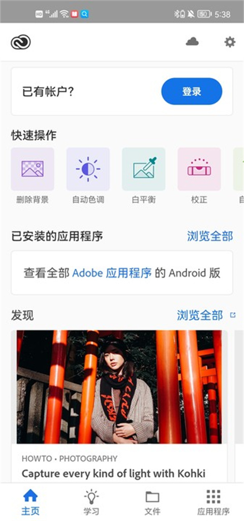 搜索并发现来自 Adobe 的最佳移动应用程序。快速启动已安装的应用程序。