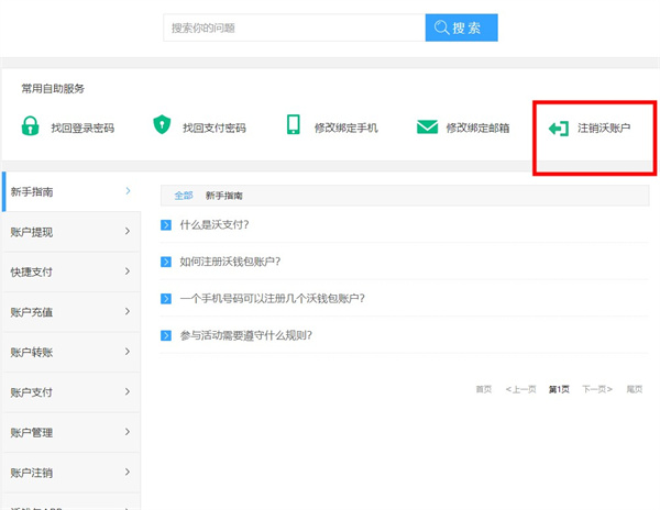 3、找到“注销沃账户”,输入信息,即可按照官方指定步骤进行注销操作。