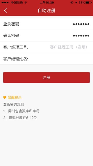 6、点击“下一步”按钮,设置登录密码、确认密码、客户经理工号(选填);