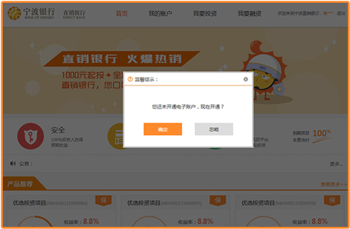 2、宁波银行客户未开通宁波银行网银或非宁波银行客户,点击“立即注册”;