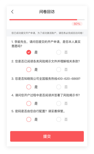 步骤8:问卷回访。您可根据自身真实情况,完成回访问卷。