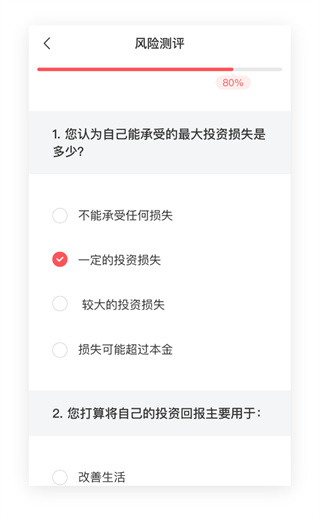 步骤4:风险测评。特别提醒:用户勾选“不能承受任何损失”后,将不能继续进行后续开户操作。