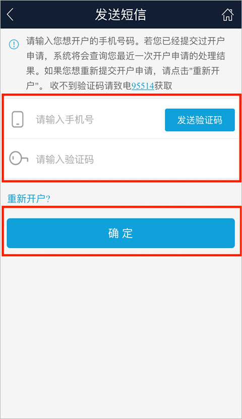 2、然后输入想开户的手机号,获取验证码即可。