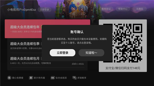未登录时,可在个人中心右上角查看游客账号“超级大会员”的有效期(登录时,展示的是个人账号的“超级大会员”有效期哦)。3、如果卸载了云视听小电视,游客账号下购买的会员还在吗?