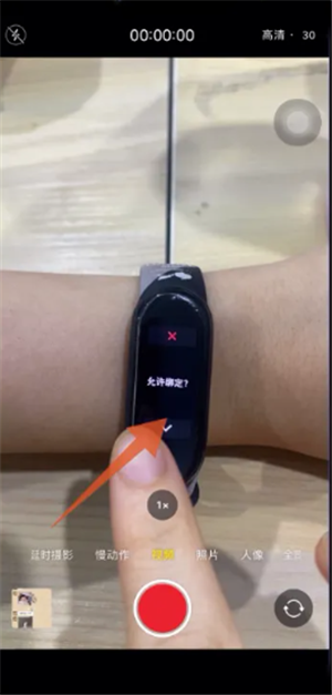 5、显示正在搜索当中,将手环靠近手机,看见手环页面出现允许绑定,点击对勾。