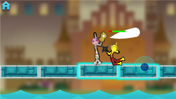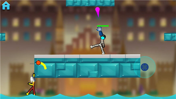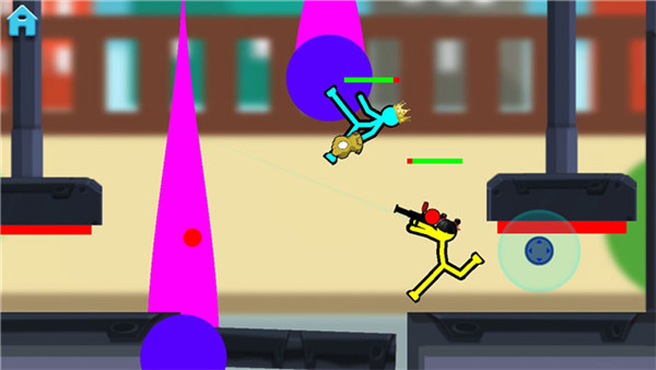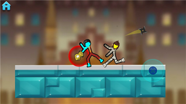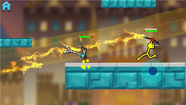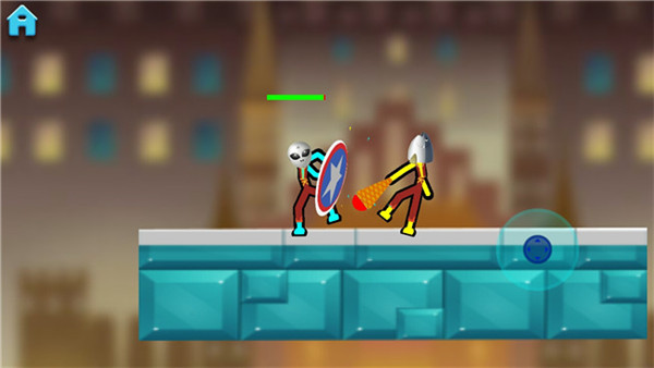 PVP对战是《决斗火柴人》的一大特色玩法。游戏支持2名玩家用同一设备进行游戏,玩家通过控制遥控杆进行攻击和防御。