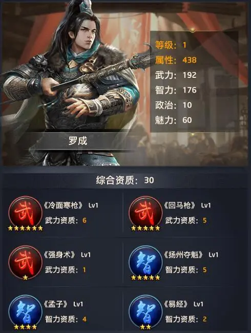 优先升级 “百分比属性加成” 技能(如武力 + 0.5%),次选固定属性加成。