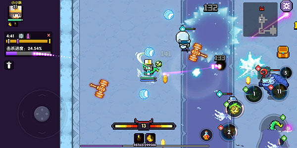2、玩家在挑战冒险关卡时需要消灭一定数量的怪物来积累进度,进度满后才能挑战boss,击杀小怪大概率掉落一定金币,地图上的精英怪物房间掉落的金币数量更多。为了加快获取金币的速度,玩家应不断使用拥有10秒冷却时间的自带技能来加快移动速度。