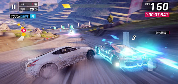 点击氮气按钮,将会激活氮气,车辆的速度将会在短时间内大量提升。氮气激活一共拥有四种状态,分别为单喷、双喷、完美氮气和氮气爆发,至于什么时候激活何种氮气,还需要玩家多多探索。