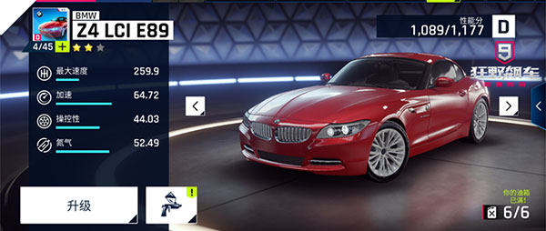 宝马Z4我们只需将其各属性升级到第3阶段即可通过赛事,虽然宝马Z4拥有可变形敞篷非常炫酷,但早期如果对它投入太多金币反而会造成金币不足,导致其它车辆无法升级。到第二章后,可以对该车辆继续强化,挑战更多关卡。