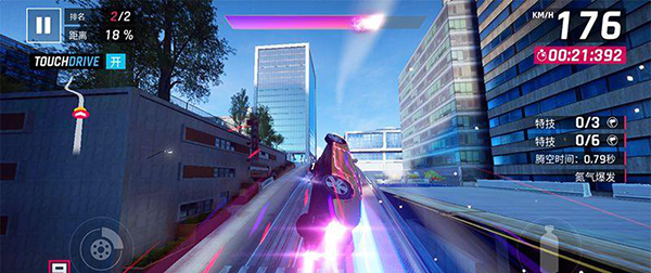 3、起跳、腾飞!配合氮气爆发的极速,原本高耸入云的楼宇仿佛瞬间矮了下去,狂野飙车9着重用光效表达加速,肾上腺素即刻飙升。