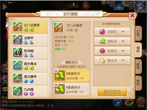 镶嵌宝石能让你的装备更为强大,不同部位的装备可以镶嵌不同类型的宝石。当你的装备达到30级之后,可以给你的装备镶嵌第一颗宝石;当你的装备达到60级的时候,可以镶嵌第二颗宝石;高等级的装备可以镶嵌更高级的宝石。
