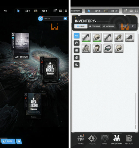 尼姬在分类上比较多样化,先是根据武器特点,分为平衡性强的步枪,远距离特化狙击,地面强化攻击冲锋,还有以群攻为主的RPG类型。但仅仅靠武器种类安排还不够,其中还有防御型、辅助型、攻击型的配置要求,所以准备好一个完善的队伍是非常重要的。本作除了有手动操控,玩家还能选择Auto操作,解放双手,专心盯着游戏中的「重要部位」。除了主线外,游戏还有「迷失地区」和「无限之塔」的玩法,竞技场在这次封测没有开。战斗方面也是属于点击射击的。