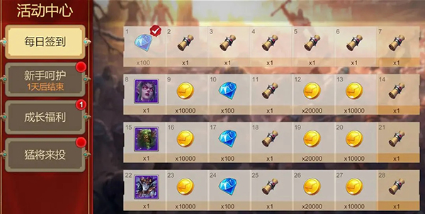 10、签到+成长福利送180抽,并可领取3个稀有英雄。