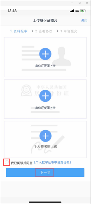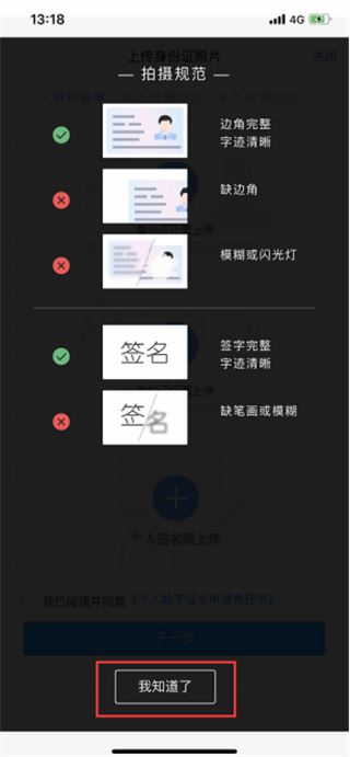 温馨提示身份证要正反面清晰、完整、要求不切边、不反光;可采用拍照或相册方式;