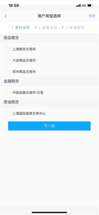 14、选择需要开立的交易所,一般建议勾选三家交易所:上海、大连、郑州,点击“下一步”;