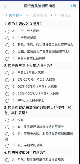 12、填写投资者风险测评问卷:请根据本人真实情况审慎勾选,题目存在一定关联性,不能前后矛盾;